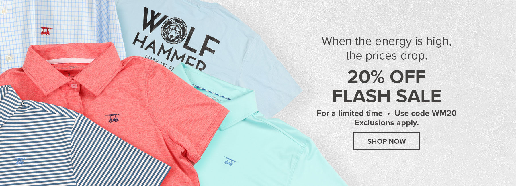 A loud weekend deserves louder savings. 20% off sitewide — use code WM20.